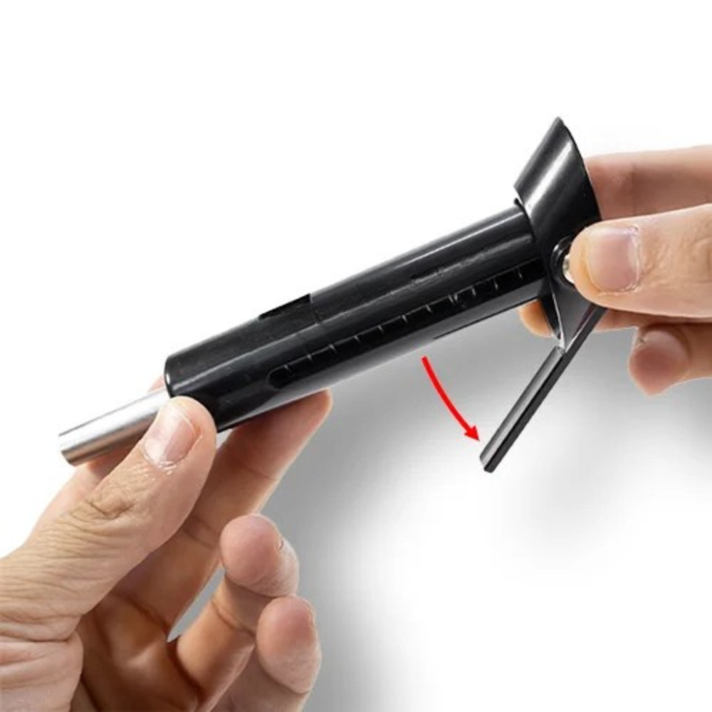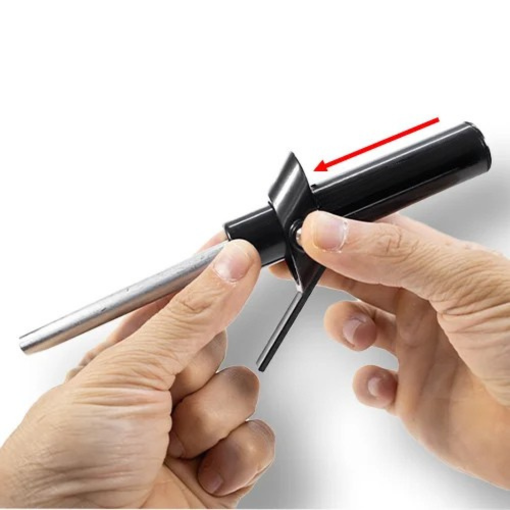 Déplacez ensuite l’ensemble de la pièce de la bride vers l’autre extrémité du tube, ce qui permet à la goupille métallique de sortir complètement.